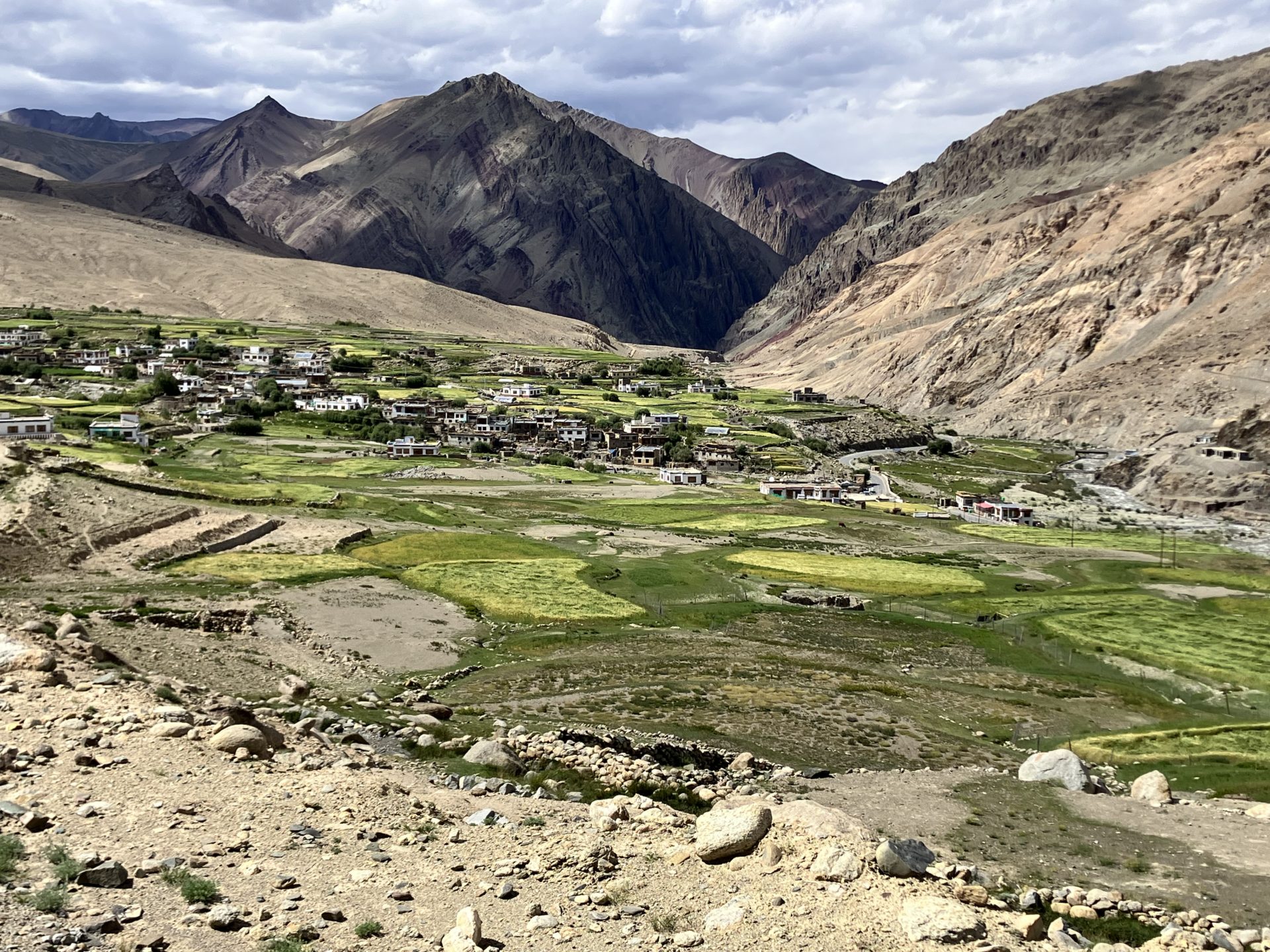 Une fois le col atteint, nous entamerons une descente plus douce vers Dogsa Yongma. Le changement de décor est saisissant : les paysages se font plus verdoyants et nous découvrirons une nouvelle facette du Ladakh.